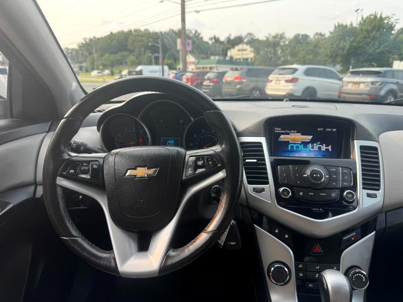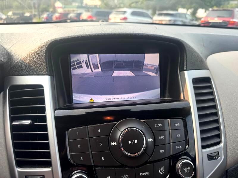 The 2014 Chevrolet Cruze 1LT with the 1SD Preferred Equipment Group is a compact sedan with a 1.4L turbocharged engine, 16-inch aluminum wheels, and an automatic transmission. Key features include a Chevrolet MyLink touch screen, Bluetooth, a backup camera, a remote start system, and comfortable premium cloth seats. It also offers convenience features like a power driver's seat, an auto-dimming rearview mirror, and heated power mirrors.