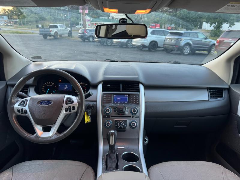 The 2014 Ford Edge SEL is a midsize SUV with a comfortable and practical interior, a 3.5L V6 engine producing 285 hp, and a stylish exterior featuring chrome accents and 18-inch wheels. It typically includes features like dual-zone climate control, a power driver's seat, and the intuitive SYNC infotainment system with voice control. Key features for comfort and convenience include a spacious cabin for five, flexible 60/40 split-folding rear seats, a backup camera, and available heated leather-trimmed seats.