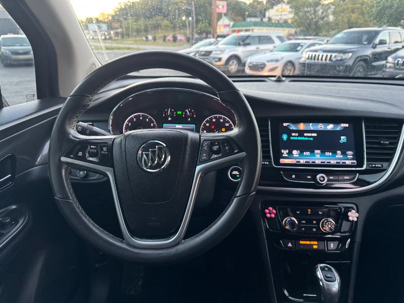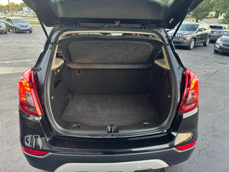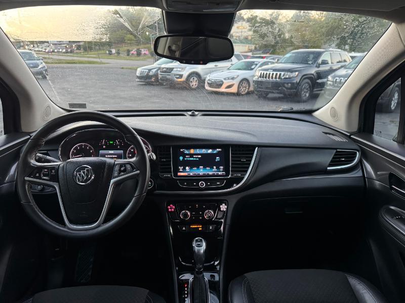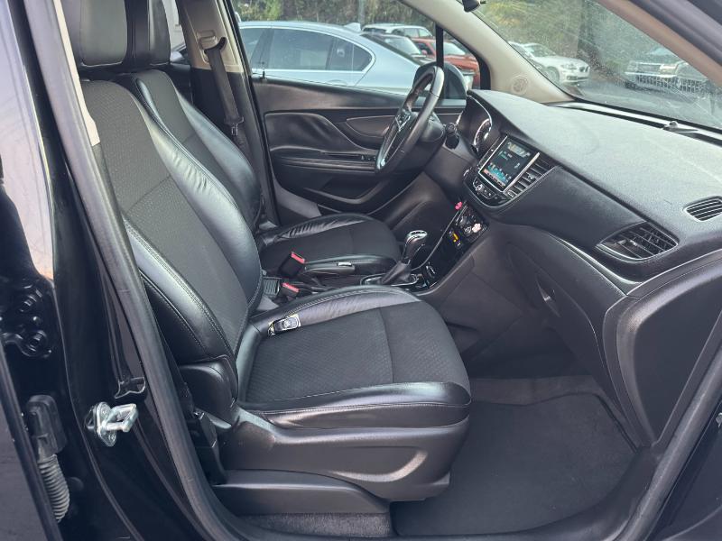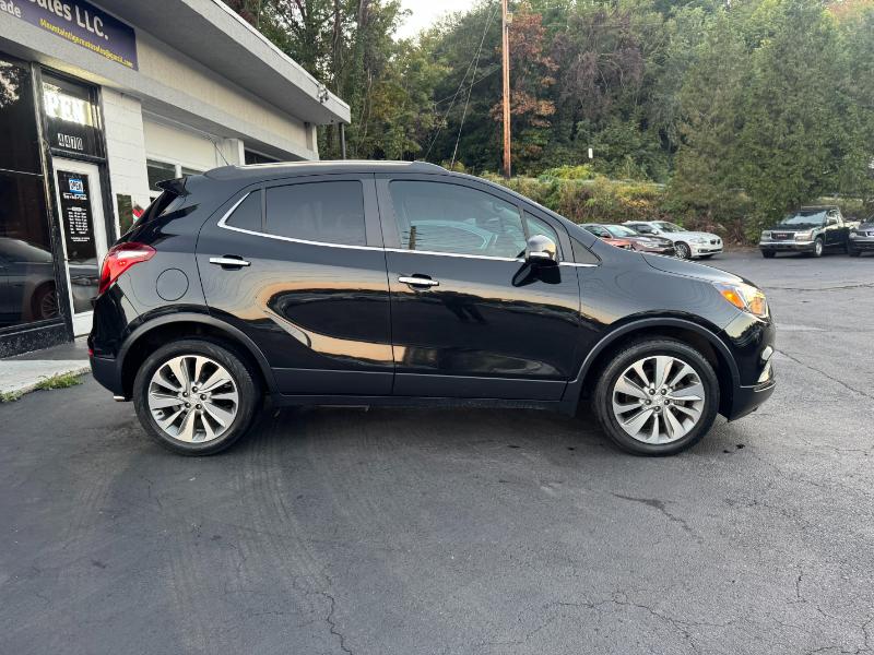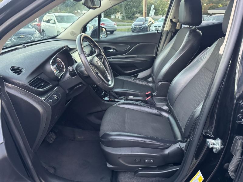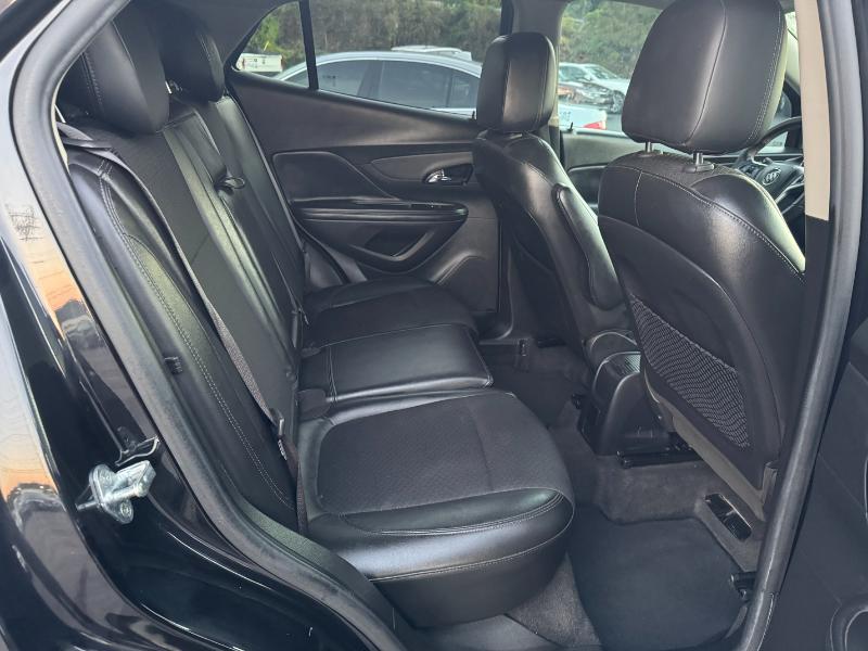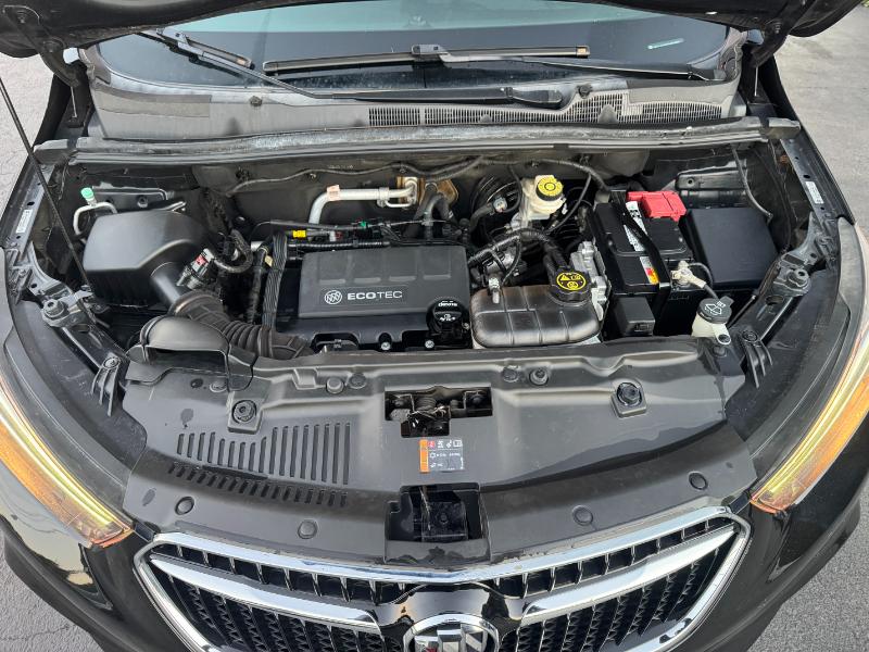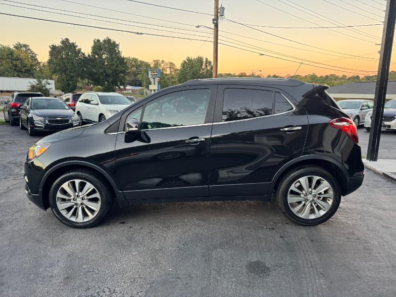 The 2017 Buick Encore Preferred 1SB is a subcompact crossover powered by a 1.4-liter turbocharged 4-cylinder engine producing 138 horsepower and 148 lb-ft of torque. It comes with an automatic transmission and front-wheel drive, with all-wheel drive available as an option. The Encore delivers an estimated 25 mpg in the city and 33 mpg on the highway. Inside, it features cloth and leatherette seating, an 8-inch touchscreen with Buick’s IntelliLink infotainment system, and comfortable seating for five. Safety features include a rearview camera, multiple airbags, stability control, ABS brakes, and OnStar connectivity. The exterior is styled with body-color bumpers, roof rails, heated power mirrors, and 18-inch alloy wheels, giving it a sleek and modern appearance.