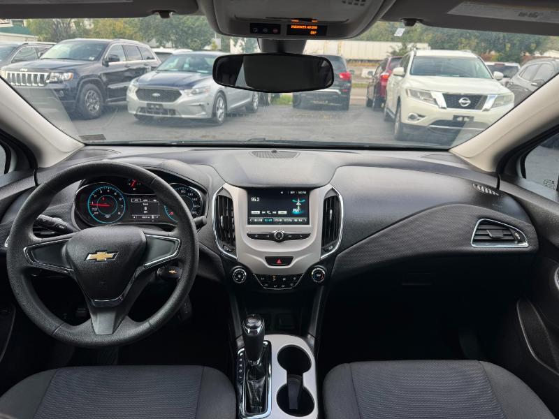 The 2018 Chevrolet Cruze LS Sedan 1SB is a fuel-efficient sedan with a 1.4L turbocharged engine, 15" steel wheels, and a six-speed automatic transmission. It features a 7-inch MyLink touchscreen with Apple CarPlay and Android Auto, a rearview camera, and standard connectivity options like Bluetooth and a Wi-Fi hotspot. Key features of the 1SB Preferred Equipment Group include power windows and locks, a remote keyless entry, and a backup camera.