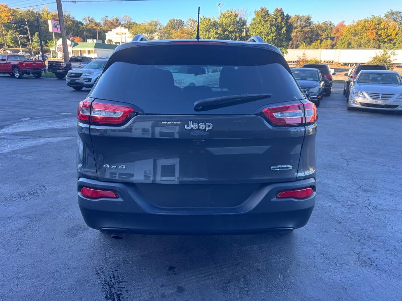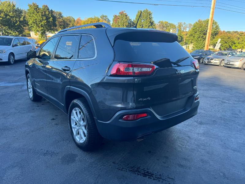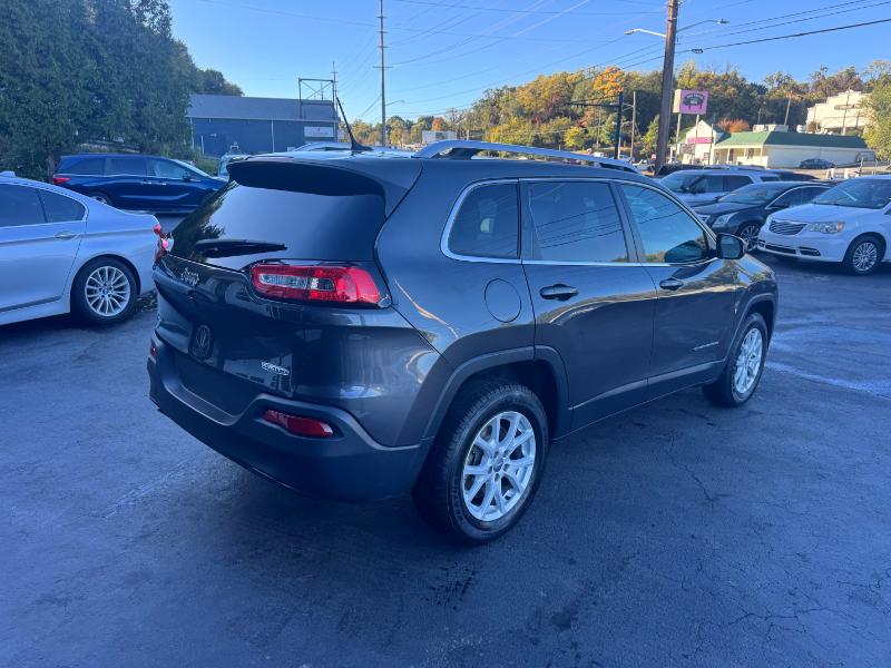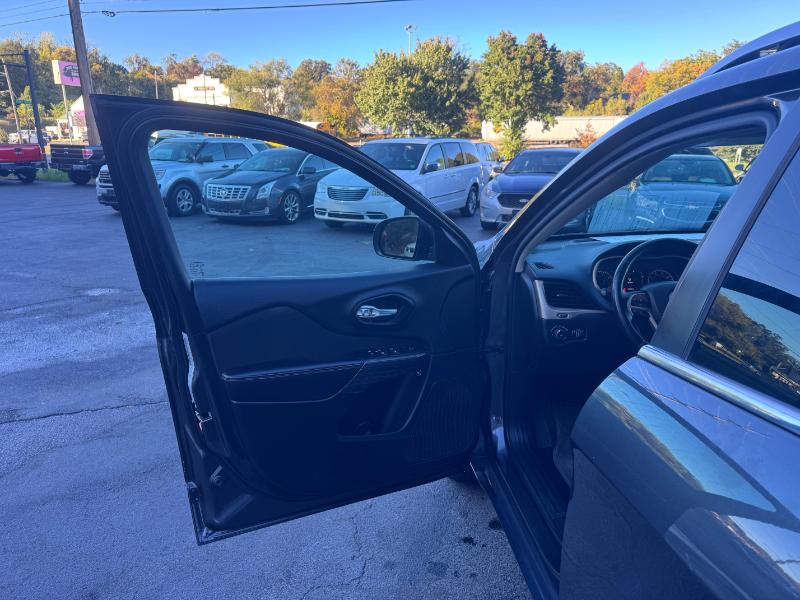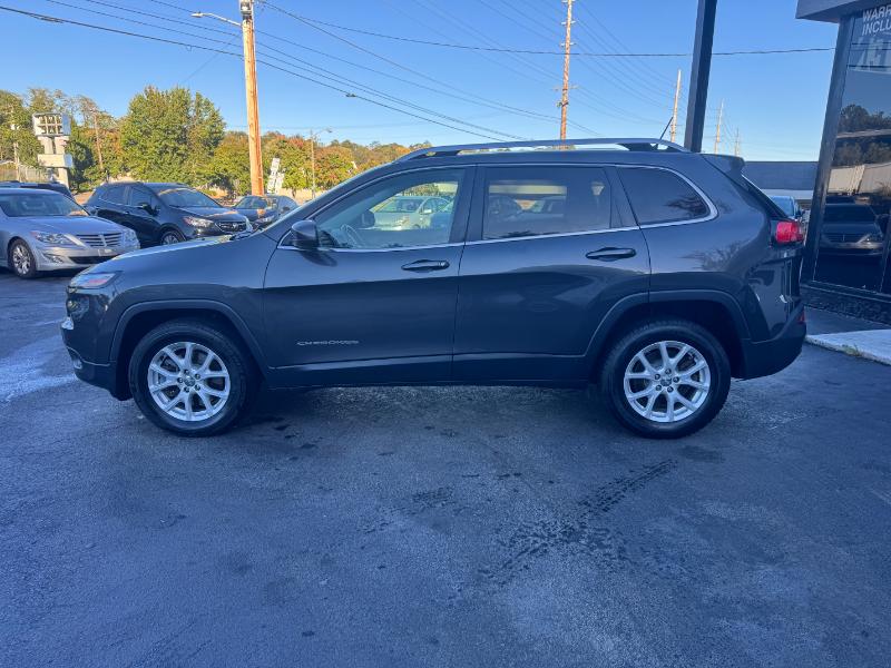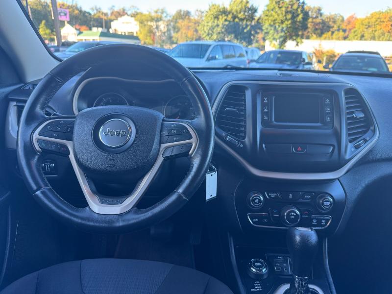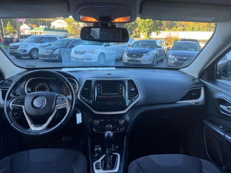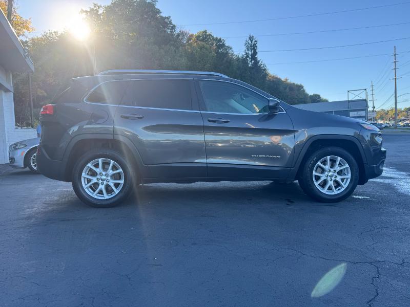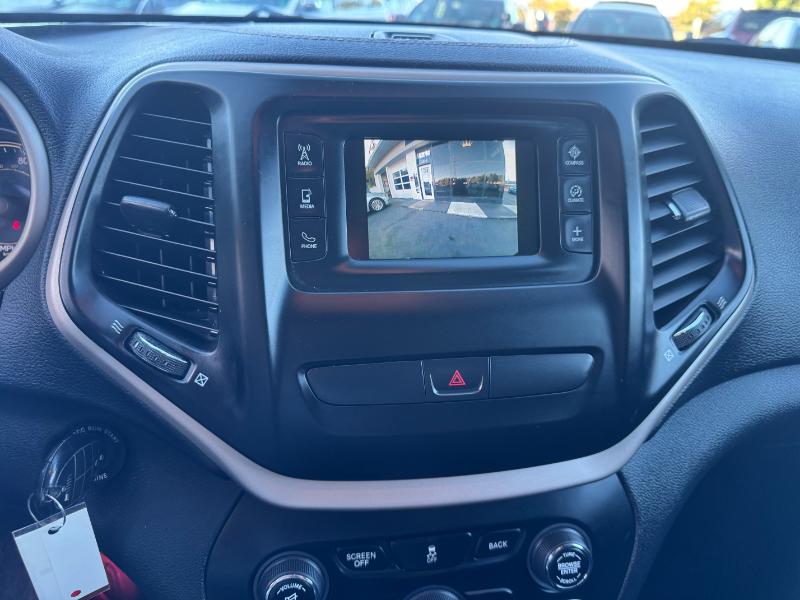 The 2015 Jeep Cherokee Latitude is a mid-size SUV known for its off-road capability and comfortable ride, available with a 2.4L V4 engine, an automatic transmission, and four-wheel drive. Standard features include a 5-inch touchscreen, Bluetooth, and a rearview camera, while options can add heated seats, a heated steering wheel, and a navigation system. It also includes a variety of safety features such as stability control, traction control, and multiple airbags