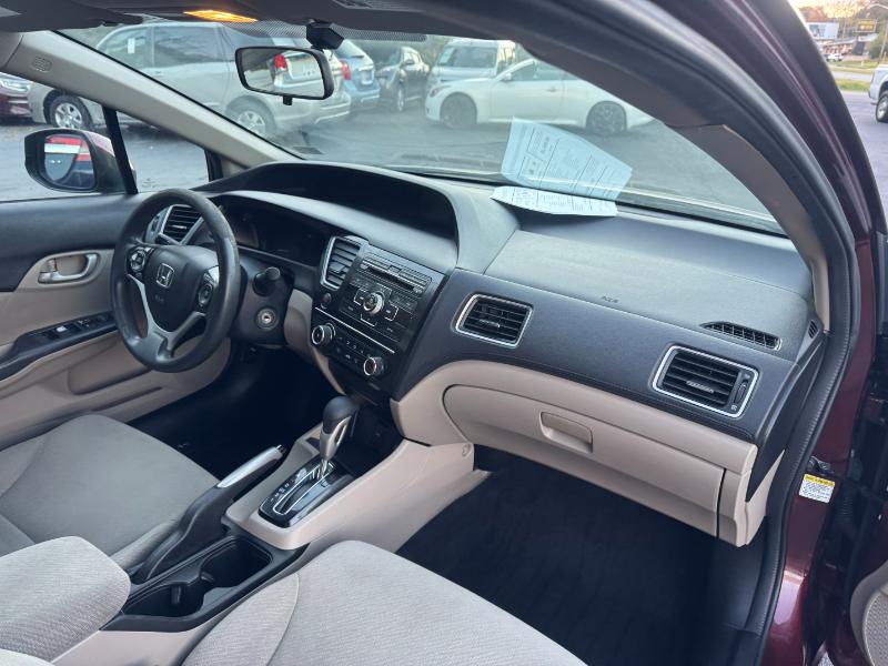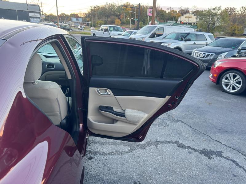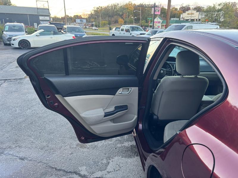 The 2013 Honda Civic LX sedan is a compact car known for its reliability, efficiency, and comfortable ride. It features a 1.8L i-VTEC 4-cylinder engine paired with an automatic transmission, front-wheel drive, and an Eco Assist system. Key features include a standard back-up camera, Bluetooth, a CD player, air conditioning, power windows and locks, keyless entry, and steering wheel-mounted audio controls.