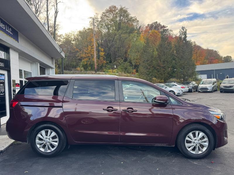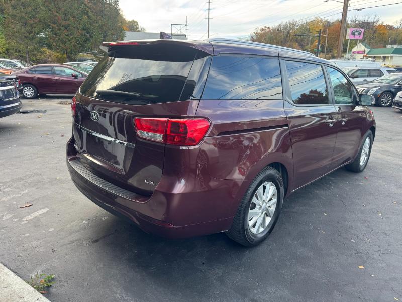 The "120.5" WB" in "2017 Kia Sedona LX" refers to a wheelbase of 120.5 inches, which is a standard dimension for the 2017 Sedona LX and other trims. This minivan also features a 3.3-liter V6 engine, front-wheel drive, and has an overall length of 201.4 inches. The LX trim includes standard features like a rearview camera, Bluetooth, and seating for seven.