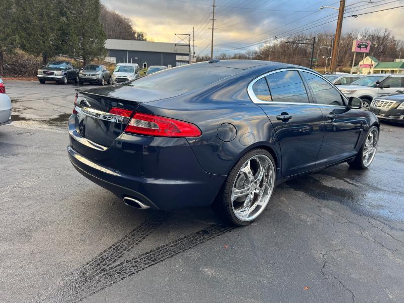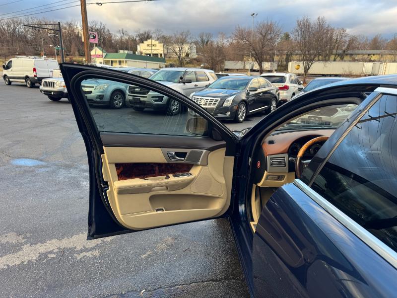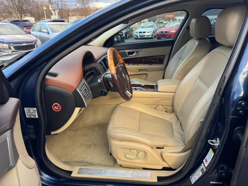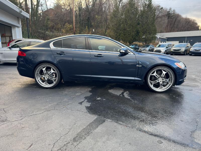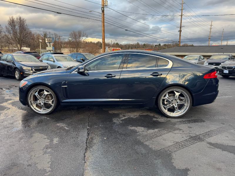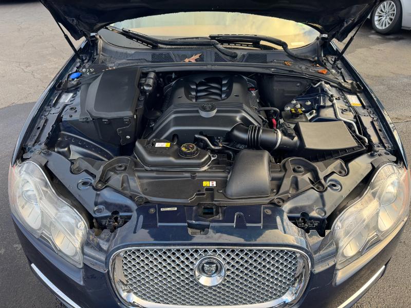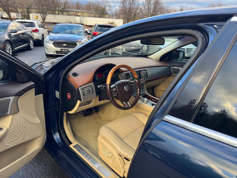 The 2009 Jaguar XF Premium Luxury is a four-door luxury sedan that blends sporty performance with premium interior features. It offers a 300-hp 4.2L V8 engine, an automatic transmission with paddle shifters, and a refined cabin with leather upholstery, genuine wood trim, and advanced technology like a touchscreen navigation system and heated/cooled seats. The vehicle's design marked a modern departure for Jaguar, with a focus on a driving experience that belies its size.